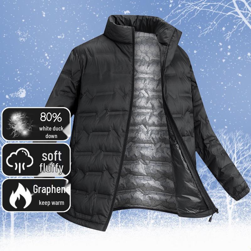 Stay warm and stylish this winter with this versatile Unisex Heated Down Jacket. Designed for both men and women, this jacket features an innovative graphene heating element to ensure optimal warmth even in the chilliest conditions. Its luxurious 80% white duck down filling provides superior insulation without the bulk, while the medium thickness offers both comfort and flexibility. The stand-up collar adds a touch of elegance and extra protection against the wind. With a loose fit and striking striped pattern, this outerwear piece is as fashionable as it is functional. Crafted from durable polyester, it promises both longevity and a sleek look. Perfect for those seeking a reliable blend of technology and style.