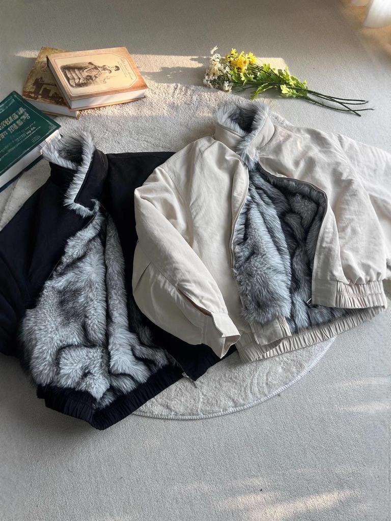 Wolf King Throne Mountain Eagle Imitation Fur Cotton Harrington Bomber Jacket for Men and Women - Thick, Padded, Cleanfit Outerwear.