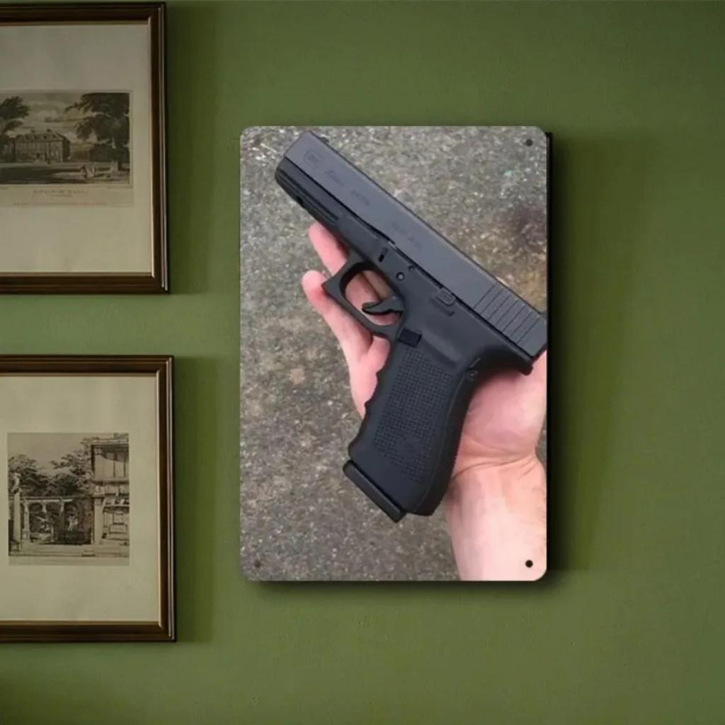 Iron Glock Wall Art Metal Sign Vintage Black Decor for Man Cave Garage Bar