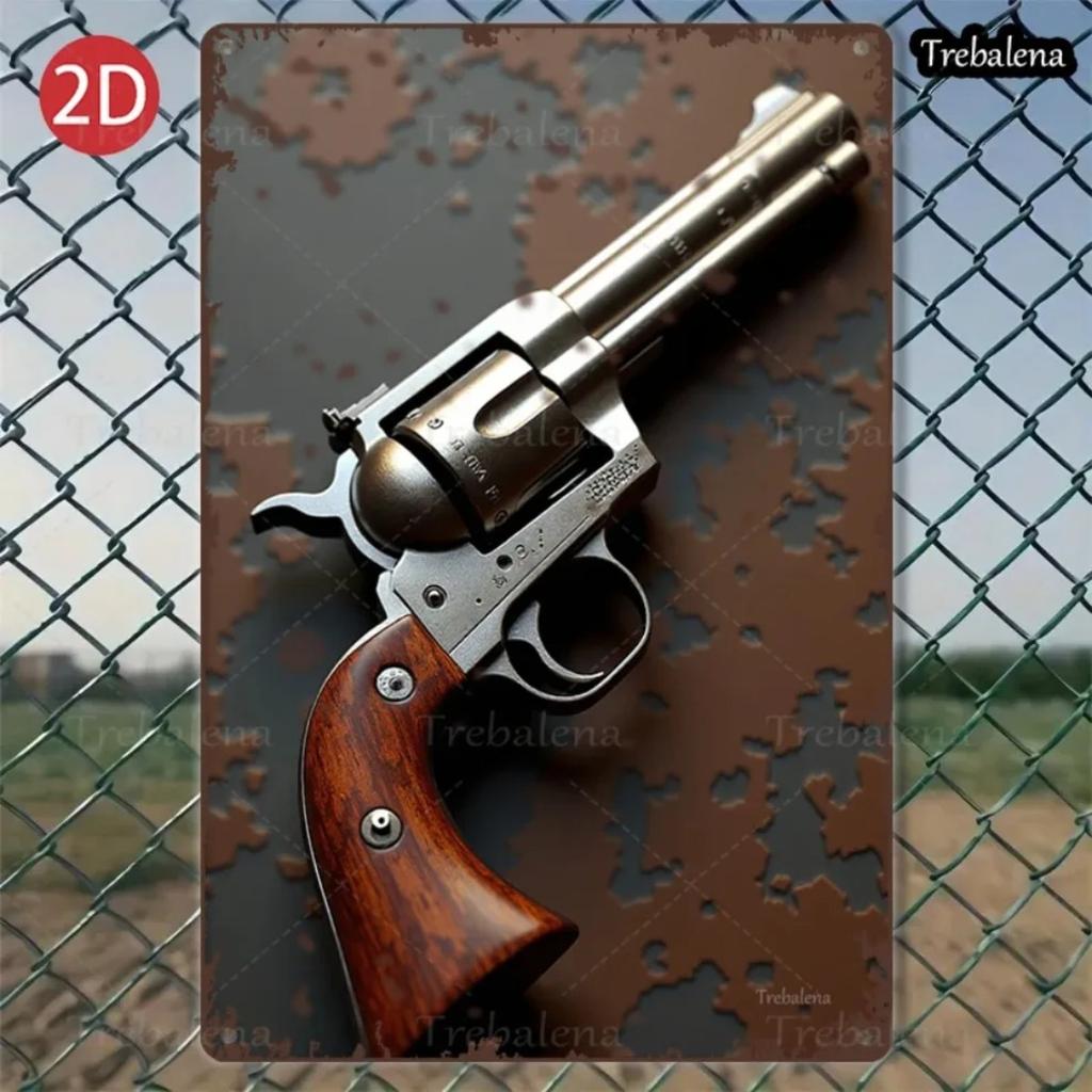 True Mans Toys Vintage Metal Wall Art 8x12 Inch Rusty Revolver Sign 2D Flat Metal Decor