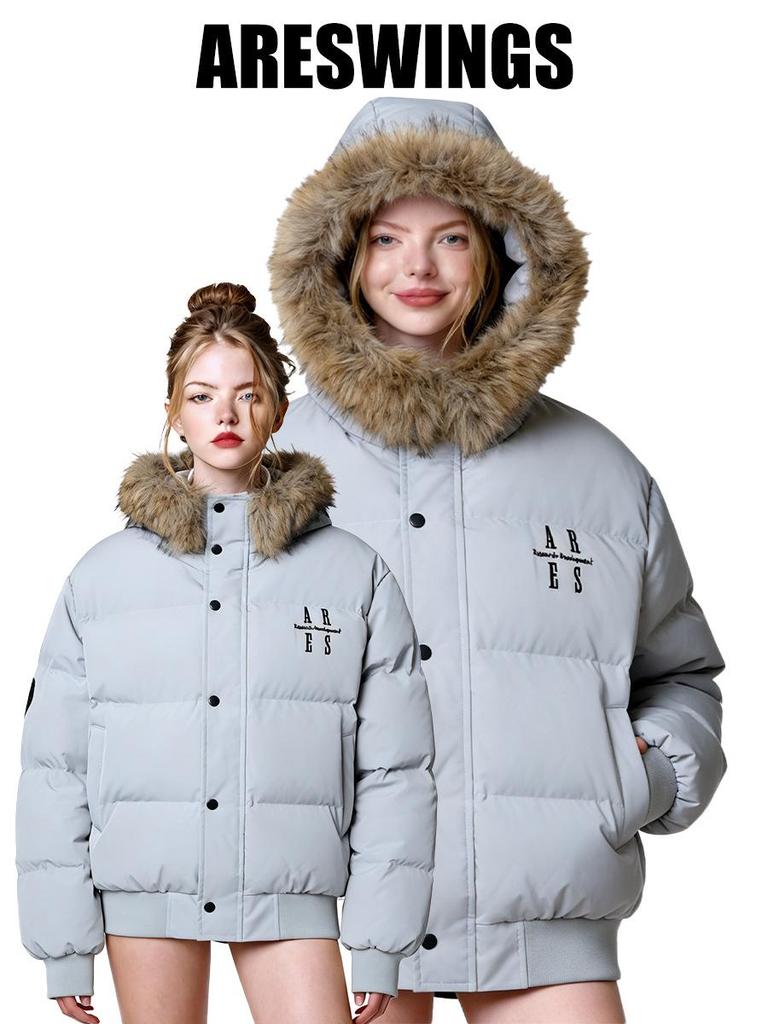 ARES Retro Embroidered Men's Winter Coat with Detachable Fur Collar