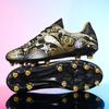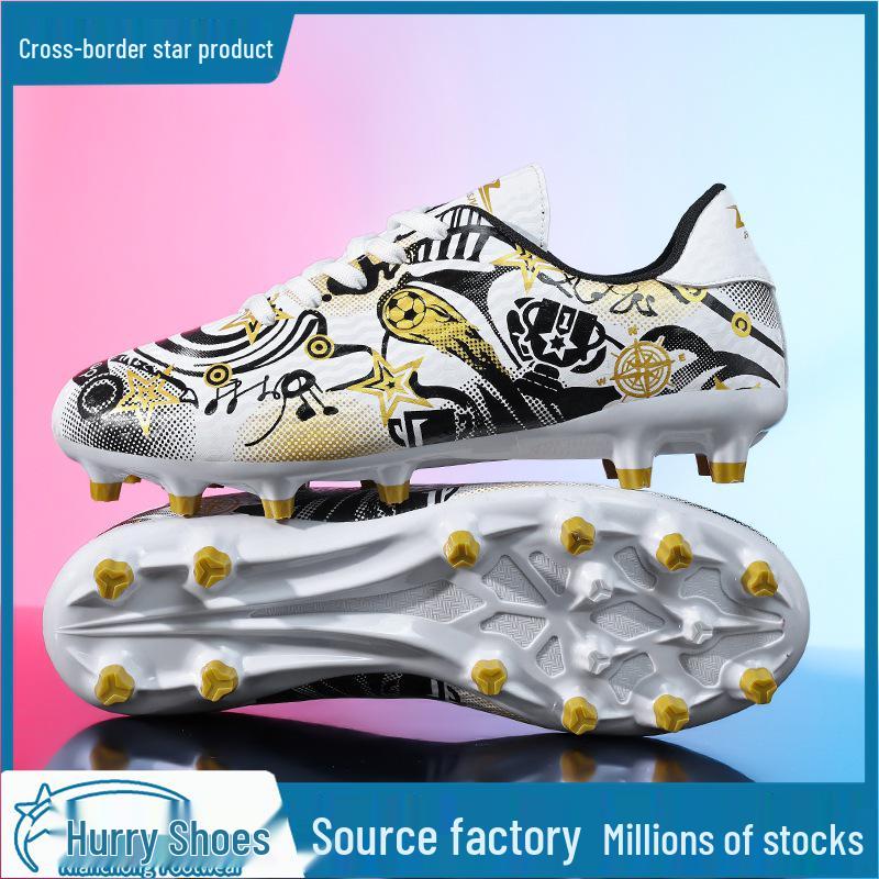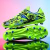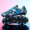 These professional football training shoes are designed specifically for children seeking to enhance their skills on the field. Suitable for both boys and girls, they come in medium and large sizes. The shoes feature a rubber sole, providing excellent grip and stability during play. Long spikes ensure optimal traction on various surfaces, making these shoes an ideal choice for young athletes aiming for top performance during practices and games.
