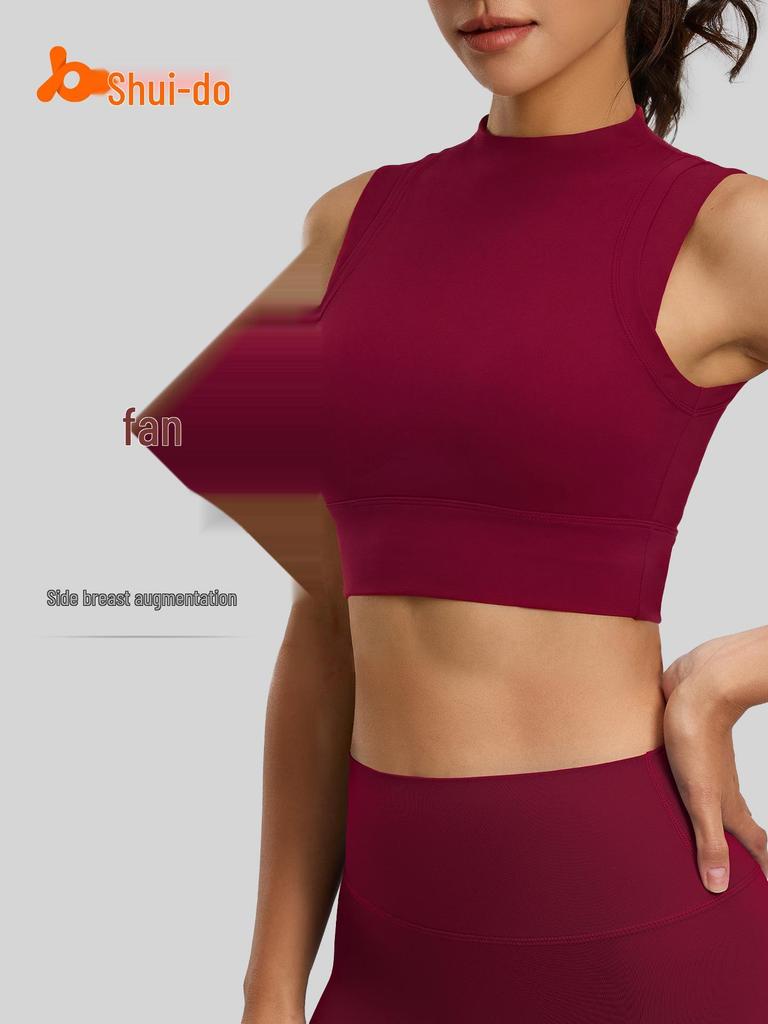 Juyitang 2026 High Neck Sports Vest - Double-Sided Brocade, Shockproof, High Elasticity, Fixed Cup Yoga Bra