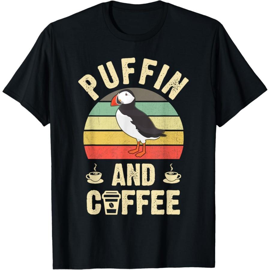 I like Puffin & Coffee Funny vintage theme Plar Animal lover T-Shirt — tüm dünyaya ücretsiz teslimat ile online ürün satın alın!