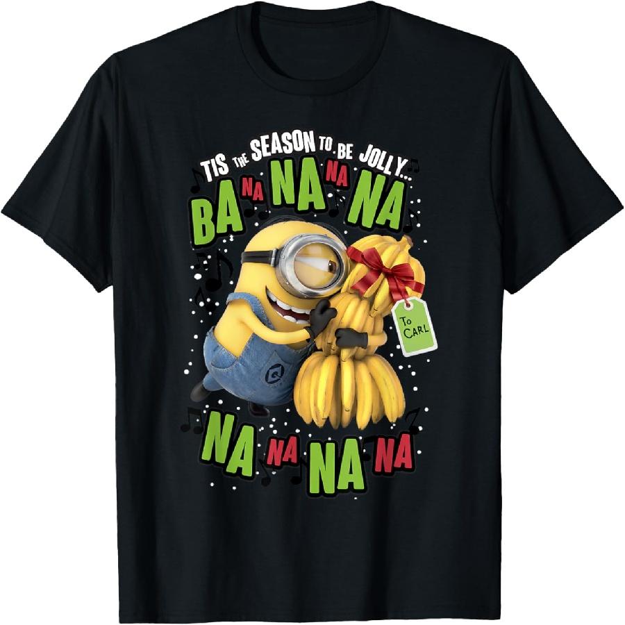 Despicable Me Minion Banana Present Christmas Short Sleeve T-Shirt — tüm dünyaya ücretsiz teslimat ile online ürün satın alın!