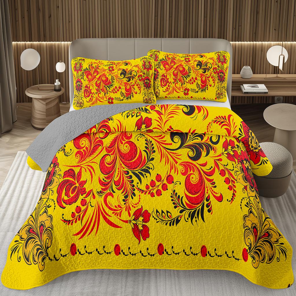 Boho Floral Bedspread Queen/Twin Luxury European Damask Paisley Pattern - Classic & Gorgeous Coverlet Reversible Grey Quilt Set — tüm dünyaya ücretsiz teslimat ile online ürün satın alın!