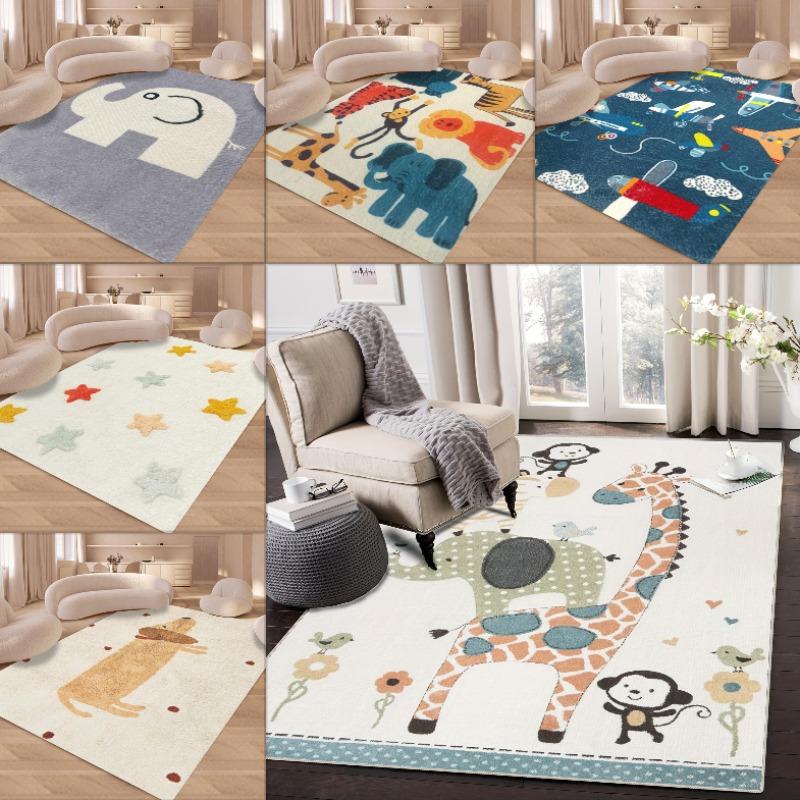 Durable Washable Giraffe Pattern Area Mat Anti-Slip for Living Room or Bedroom Decor Playful Animal Elephant Zebra Monkey Shape