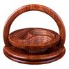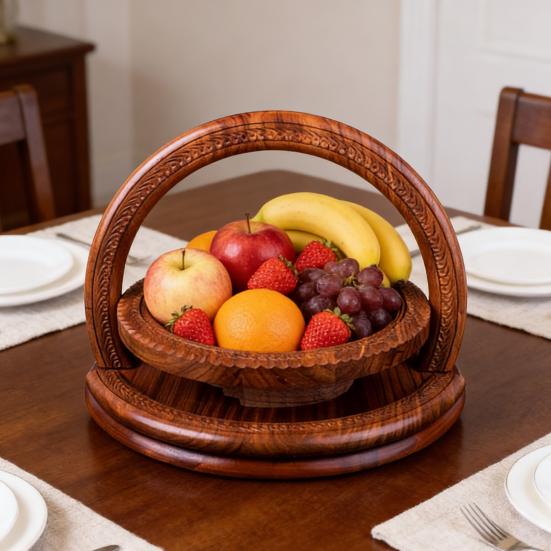 Wood Fruit Basket with Heart-Shaped Partition Hand-Carved Decorative Serving Tray for Fruits Nuts Snacks Multifunctional Home Decor