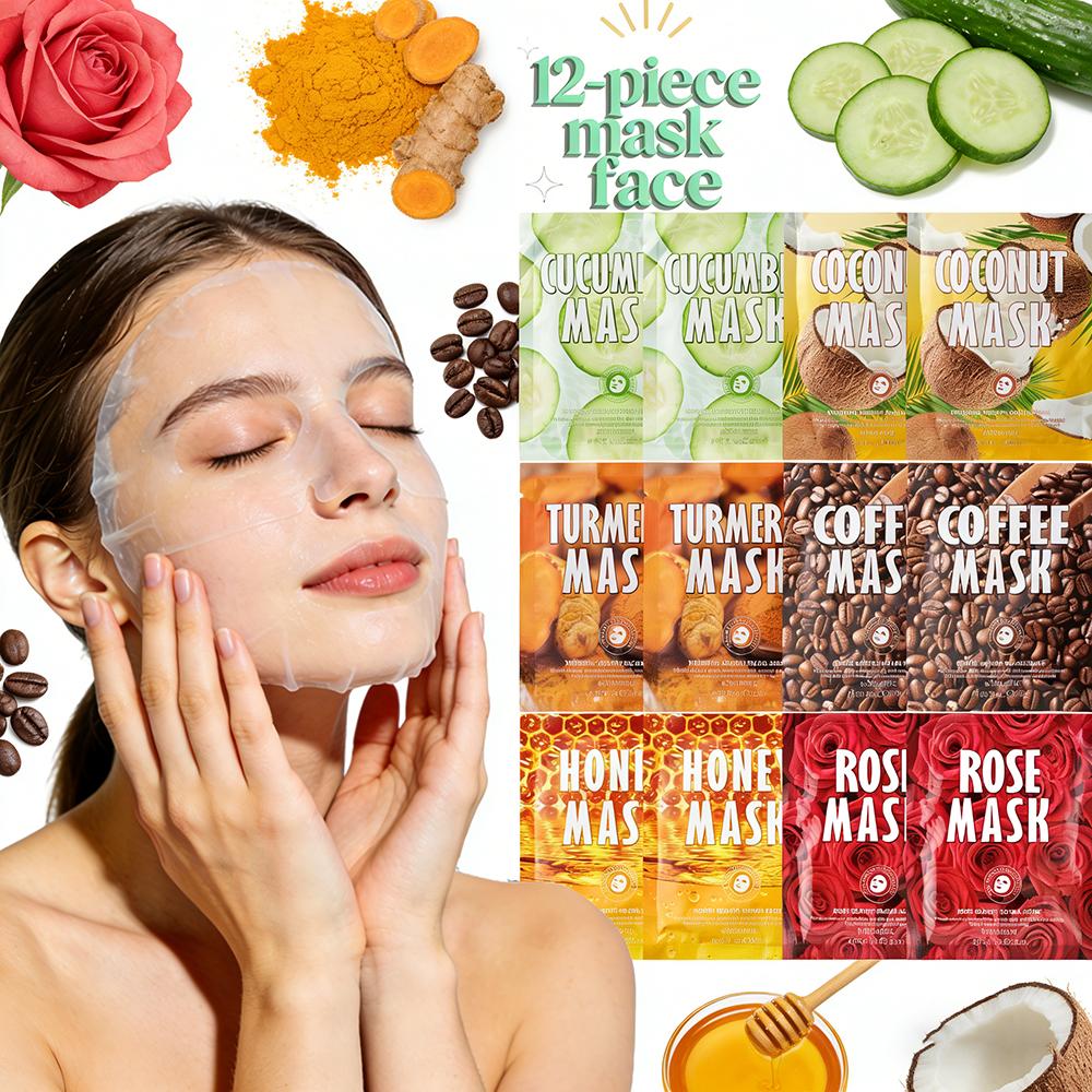 Transform your skincare routine into a spa-like experience with this luxurious 12-Piece Sheet Mask Collection! Featuring 6 distinct, natural-ingredient masks, this set is your ultimate toolbox for addressing different skin needs anytime—whether you crave deep moisture, brightening, soothing, or a radiant glow.