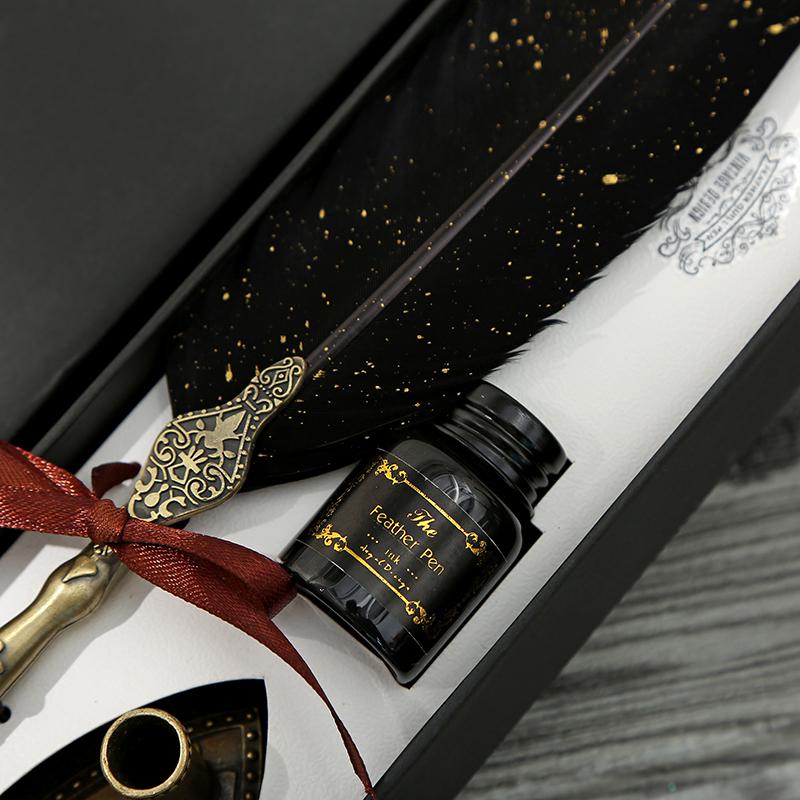 1 Set Classic Texture Practical Calligraphy Feather Dip Pen No Ink Quill Fountain Writing Portable Wedding Gifts