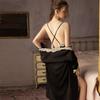 Sexy pajamas women's summer ice silk lace beautiful back suspender nightdress two-piece set open fork loungewear can be sent on behalf of