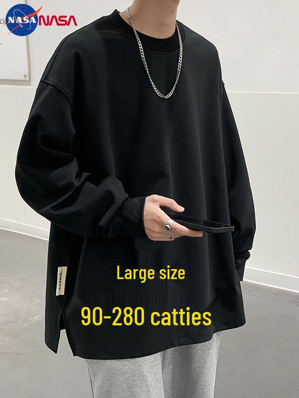 NASA Men's Trendy Long Sleeve Spring/Autumn Hoodie - Plus Size Heavyweight T-Shirt with Velvet, Solid Color, Loose Slit Design. — tüm dünyaya ücretsiz teslimat ile online ürün satın alın!