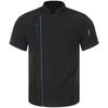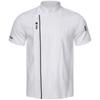 Unisex Lightweight Chef Jacket Stand Collar Short Sleeve Letter Embroidery Contrast Trim Kitchen Uniform Top