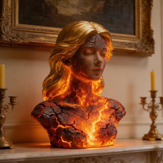 Blazing Maiden Figurine Flame Girl Bust Statue Resin Sculpture Home Office Desktop Artistic Decoration Ornament