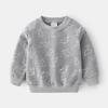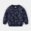 Casual long-sleeved children's sweater, dinosaur stick figure cartoon non-hooded jumper, blue and gray cute boys sweater