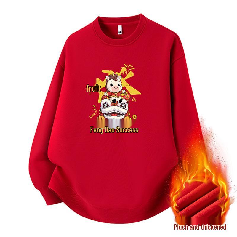 This unisex sweatshirt features a striking red color and is designed with a stand neckline and long sleeves for ultimate comfort. Made from durable polyester material with polyester fiber fur, it offers cozy warmth, perfect for those chilly annual meetings. The sweatshirt boasts a solid pattern and a loose fit, making it suitable for all body types. Celebrate the Year of the Horse in style with the option to add a custom logo. Ideal for bringing a touch of personalized flair to any gathering.