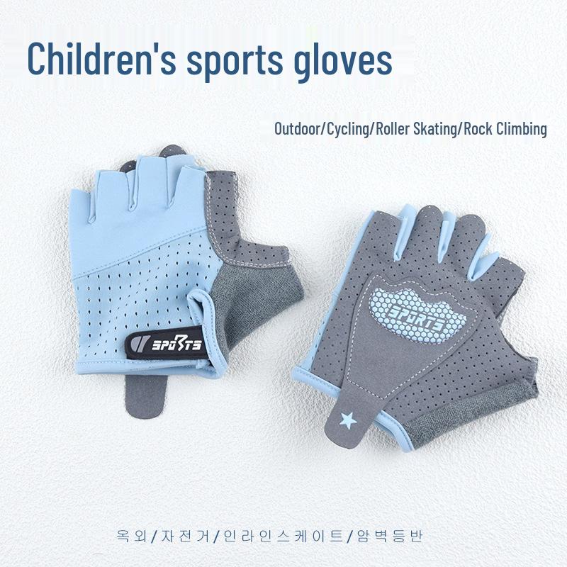 Kids' Non-Slip Half-Finger Sports Gloves: Breathable, Elastic, Wear-Resistant for Climbing, Cycling, Pull-ups & Skating.