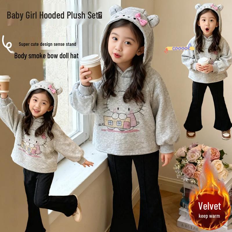 Bu sevimli kapüşonlu üst ve ispanyol paça pantolon takımı ile miniklerinizi sonbahar ve kış mevsimleri için mükemmel, sıcacık bir moda ile tanıştırın.. Set, eğlenceli bir dokunuş katan sevimli bir fiyonk detayıyla büyüleyici bir çizgi film tasarımına sahiptir.. Yumuşak ve nefes alabilen pamuktan üretilmiştir, rahat bir kullanım ve kolay hareket sağlar.. Kapüşonlu sweatshirt, sıcaklık ve stil sunan uzun kollara sahipken, ispanyol paça pantolonlar çocukların seveceği modaya uygun bir hava katıyor.. Günlük geziler veya oyun buluşmaları için mükemmel olan bu kıyafet, eğlenceyi ve işlevselliği kusursuz bir şekilde birleştirir.