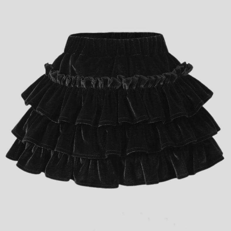 This stylish skort is perfect for your little girl's wardrobe, combining a playful and elegant design with functional features. Crafted from a soft cotton blend, it offers a comfortable fit ideal for both spring and autumn seasons. The black velvet fabric adds a touch of luxury, while the layered design and puffy silhouette give it a charming princess style. This skort also features a thoughtful anti-exposure design, providing confidence during active play. With its Korean edition flair, this skort effortlessly combines fashion and practicality for any occasion.