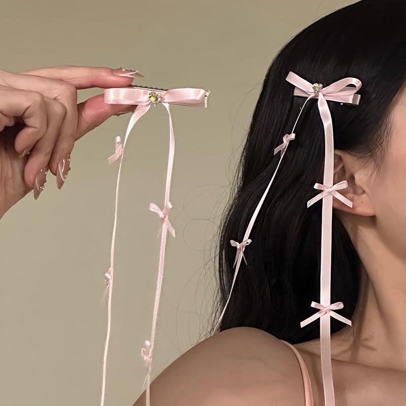 French ballet aesthetics super fairy sweet bow hairpin pink ribbon side clip hair accessories versatile new models — tüm dünyaya ücretsiz teslimat ile online ürün satın alın!