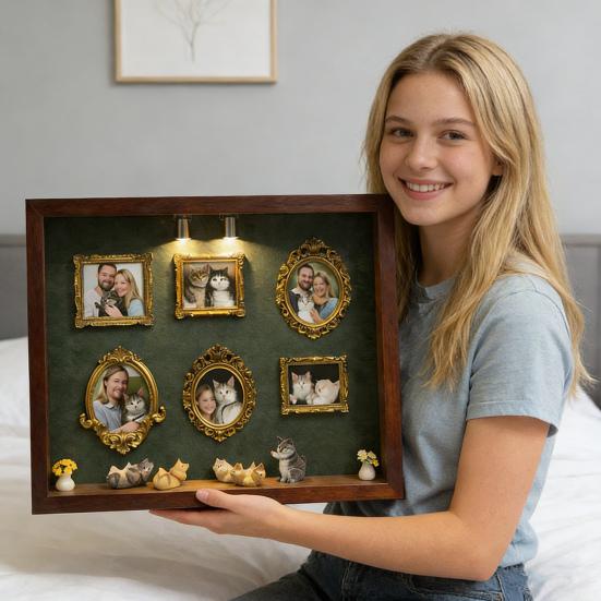 DIY Mini Museum Silhouette Box with Light Family Memory Photo Display Case Kit with 6 Gold Mini Frames 4 Miniature Cats 2 Potted Plants for Cat Lovers — tüm dünyaya ücretsiz teslimat ile online ürün satın alın!