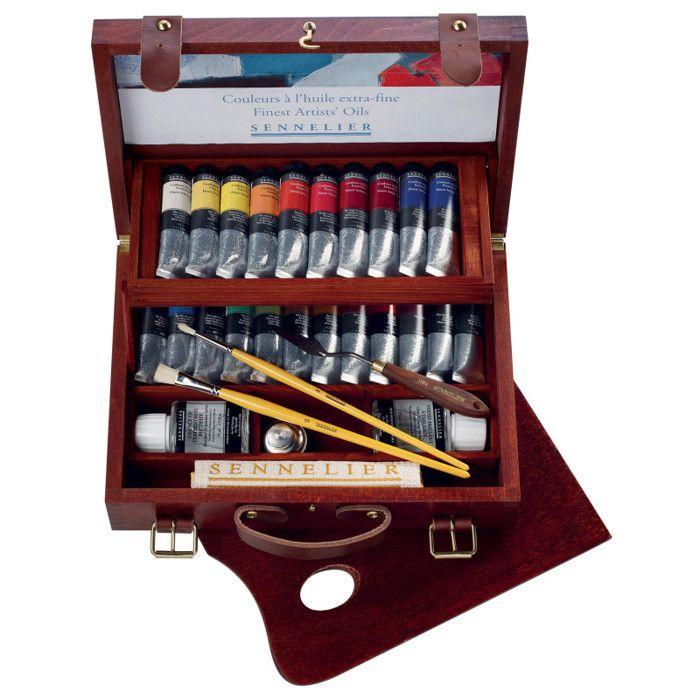 Coffret de peinture à l'huile - Sennelier - 22 tubes 40 ml - Huile extra fine - Bois vernis - Accessoires inclus
