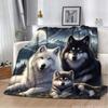 3D Animal Wolf Cute Cartoon Flannel Blanket Fluffy Children and Adults Sofa Plush Bedspread Throw Lunch Blanket for Sofa Bed