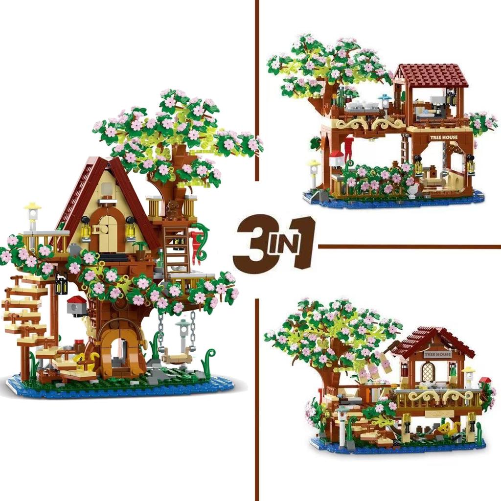 New 959PCS Cherry Blossom Flower Sakura Fantasy Treehouse MOC Architecture Model Assembly Building Block Puzzle Gift for Kid