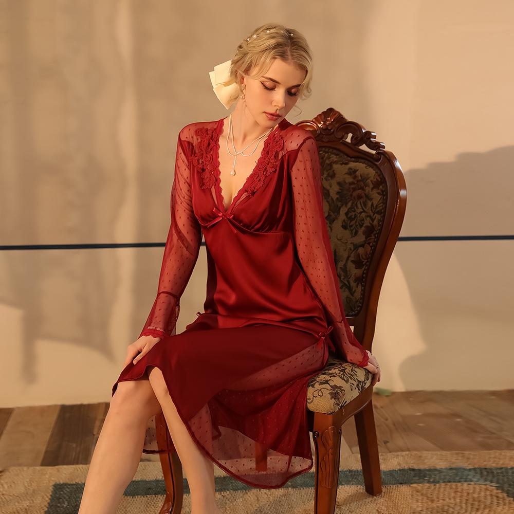 Fairy Style Semi-Sheer Backless Nightgown Ice Silk Mesh Polka Dot Slim Fit Long Cami Loungewear 535 Dreamy Lightweight Sleepwear for Summer Nights — tüm dünyaya ücretsiz teslimat ile online ürün satın alın!