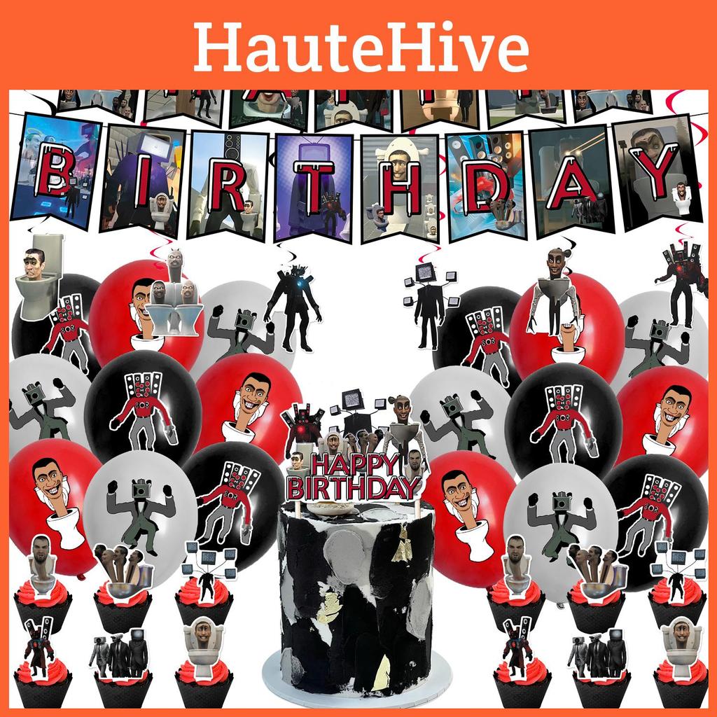Skibidi Toilet Theme Birthday Party Decoration Kit Monster Birthday Cake Topper Paper Flag Balloons And More!