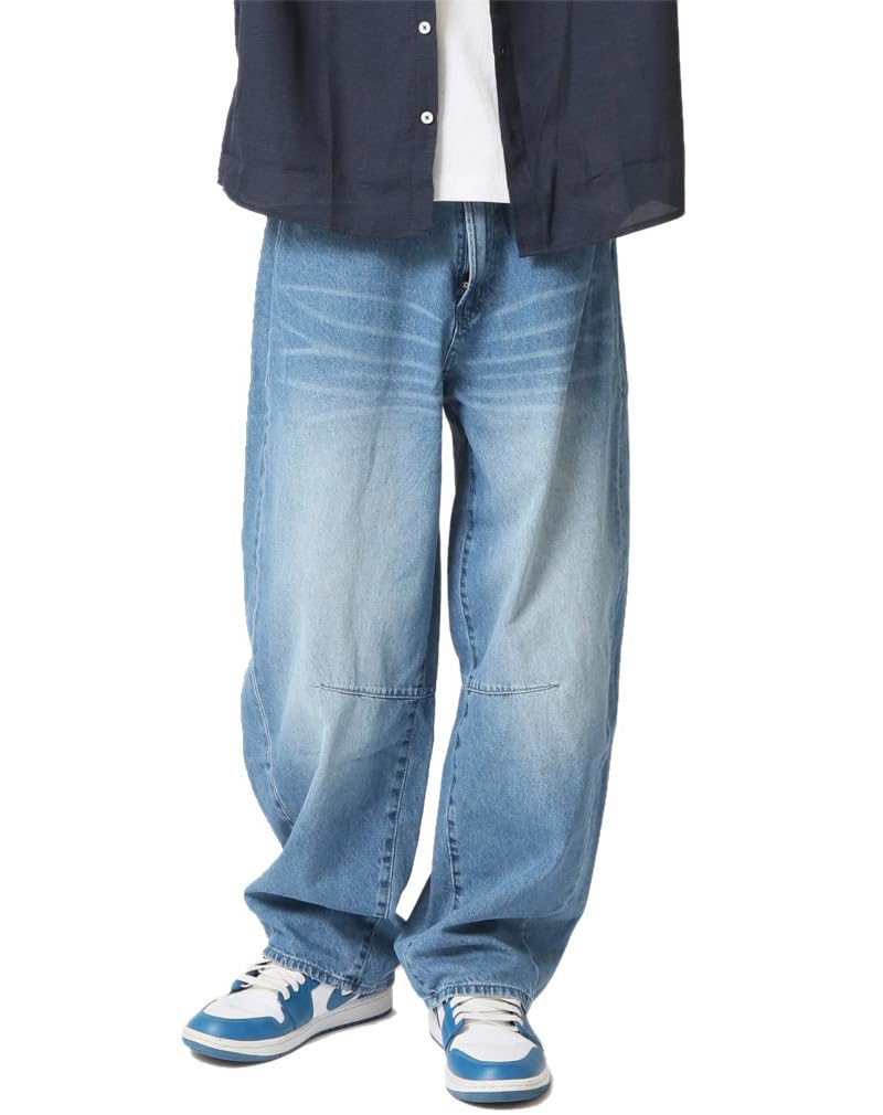 Arcade Men's Wide Leg Denim Pants with Barrel Legs, Elastic Waist, LL, Light Blue — tüm dünyaya ücretsiz teslimat ile online ürün satın alın!