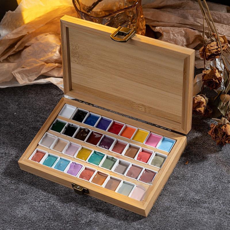 24/36/42/48 Grids Portable Bamboo Wood Square Nail Polish Palette Case Nail Art Painting Storage Box Empty Diy Nail Polish Glue