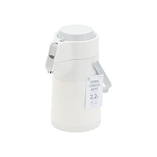 Pearl Metal Air Pot, 2.2L, Stainless Steel, Insulated, Tabletop, Wide Mouth, Upward-Angled, Milky White, Eco Stage HB-6759