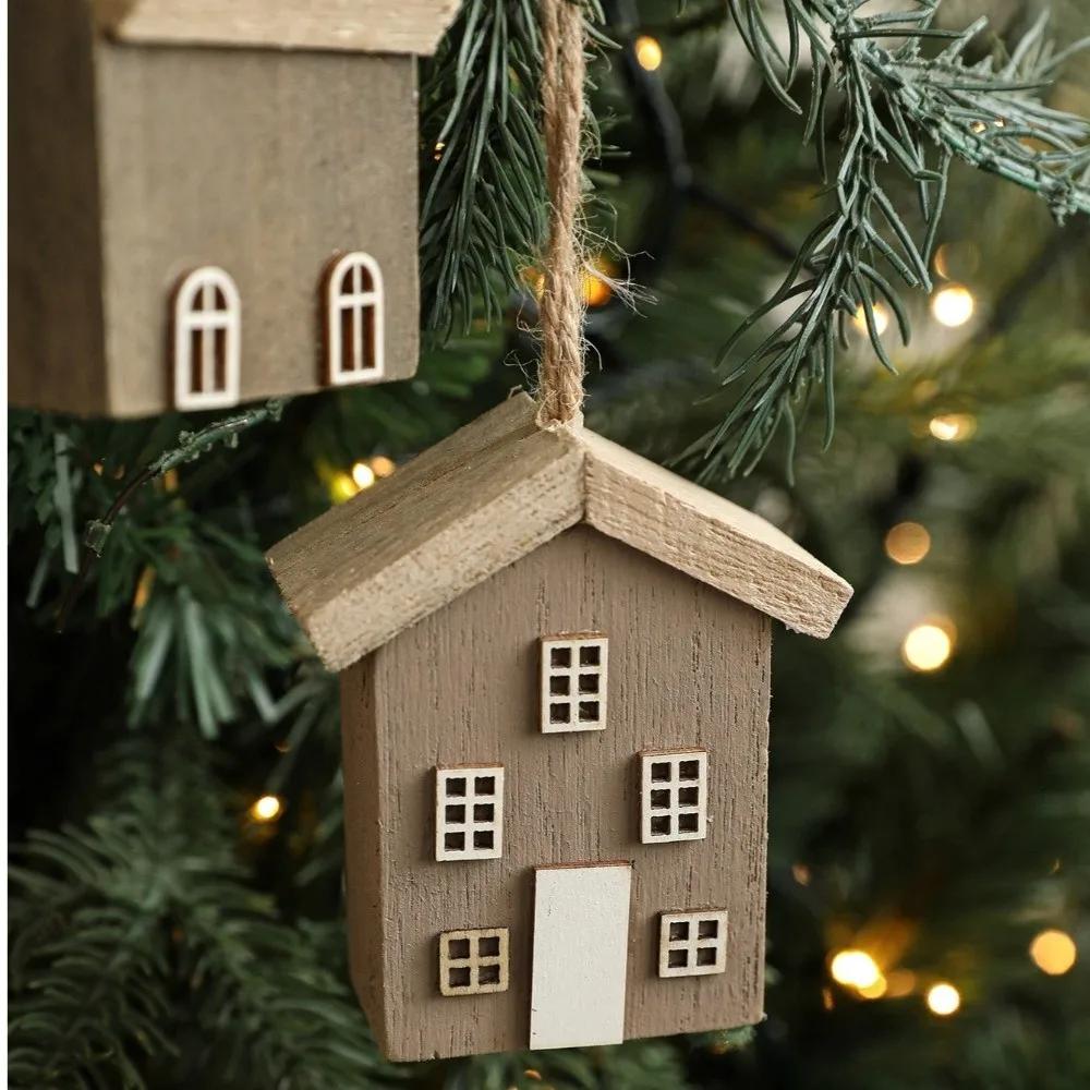 New Wooden Christmas House Pendant Village Pendant DIY Christmas Tree Decoration Log House Ornament Party Decoration