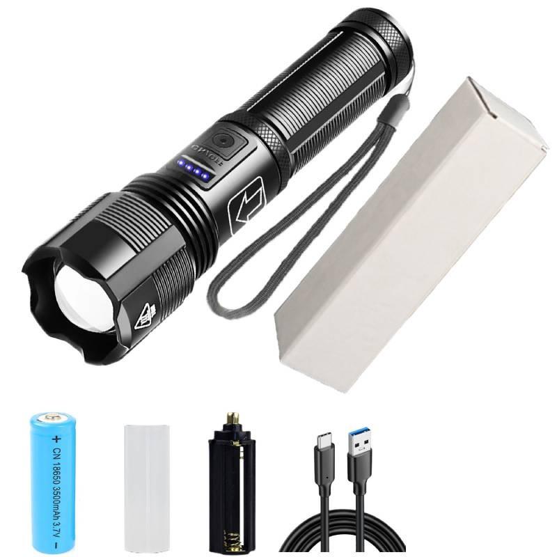 Powerful Xhp50 Led Flashlight With Usb Rechargeable Feature Ideal For Outdoor Camping And Emergency Situations