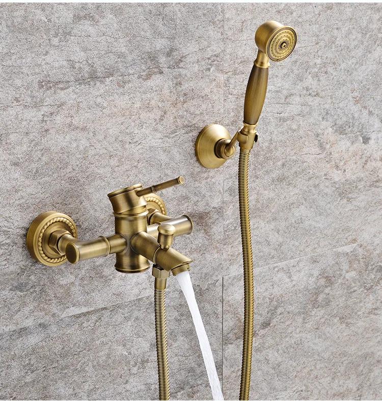 Antique Bathroom Shower Faucet Hot and Cold Bathtub Mixer Crane Tap Wall Mount Brass Material bamboo bath set