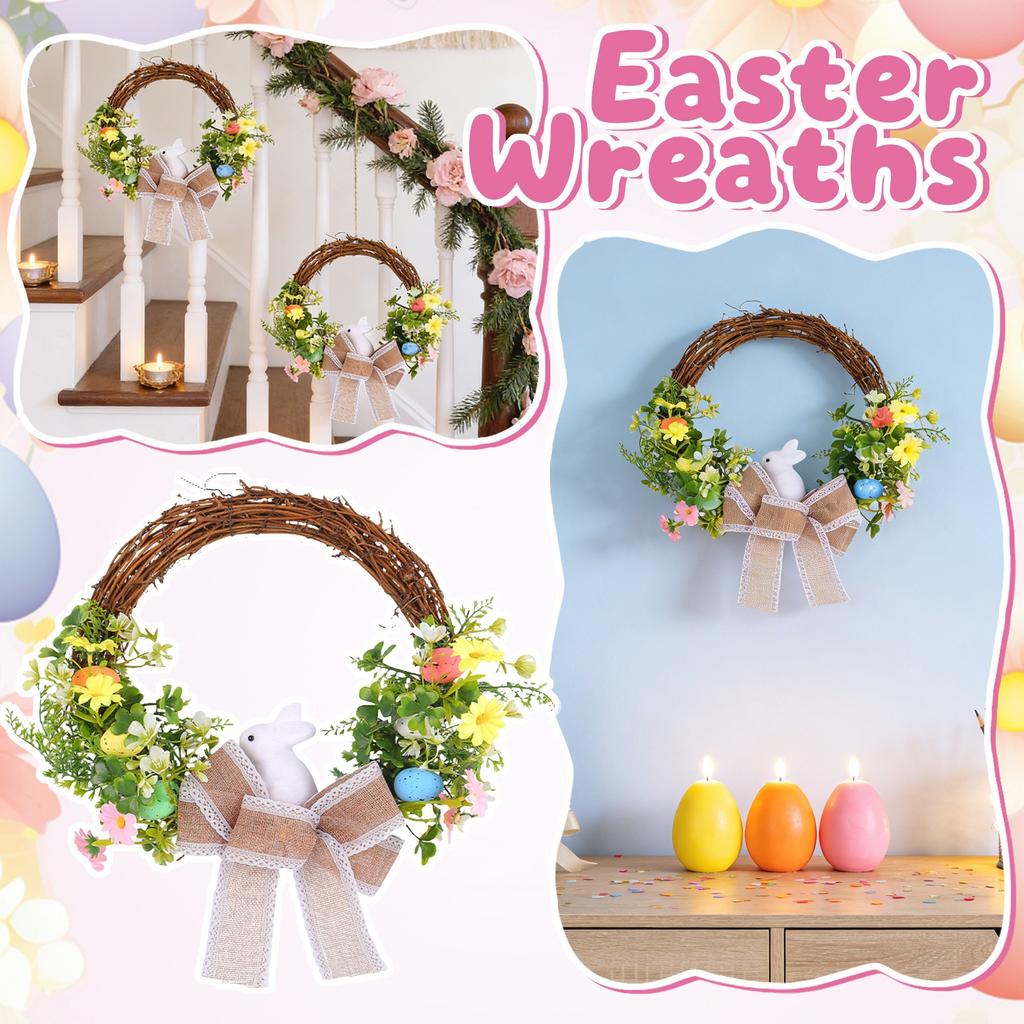 Easter Wreath Foam Egg Door Hanging Wreath Linen Bow Door Hanging Decoration