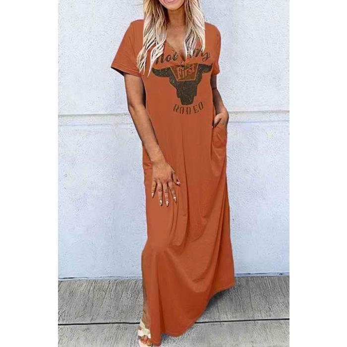 European and American new models, comfortable casual women's clothing, short-sleeved round neck retro bull's head letter color printed dress