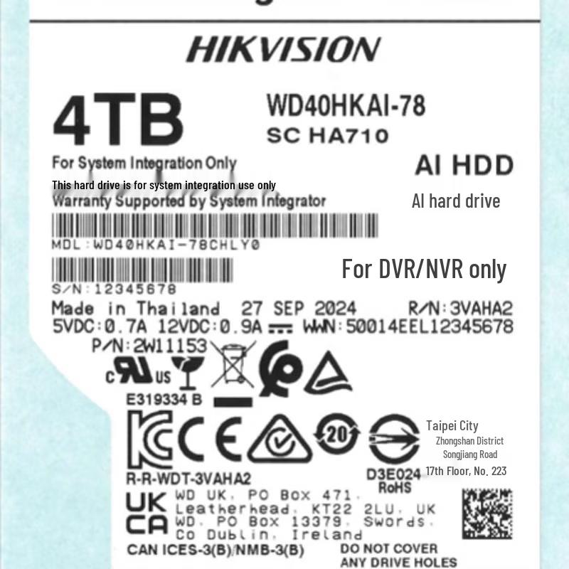Hikvision WD Co-branded 4TB AI Surveillance Hard Drive