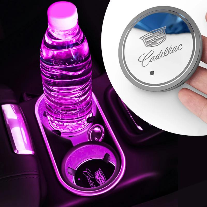Car USB Charging Luminescent Cup Pad Interior Atmosphere Lamp For Cadillac Logo Escalade CTS ATS SRX XTS XT5 STS CT5 CT6 BLS XLR