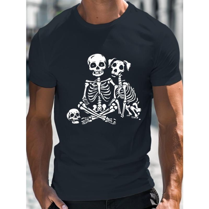 European sizes Men'S Gothic Skeleton Print T-Shirt - Short Sleeve with Human & Dog Skeleton Design, Slight Stretch Knit Fabric, All-Season Casual & — tüm dünyaya ücretsiz teslimat ile online ürün satın alın!