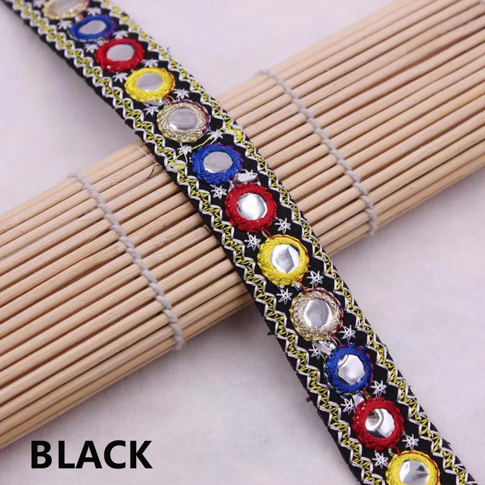 1 yard Handmade Ethnic Mirror Embroidered Webbing Indian Lace Trim DIY Sewing Net Yarn Ribbons Clothing Decorative