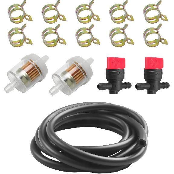1/4 Inch Gas Fuel Line Kit, 2 Meter/6-Foot Fuel Hose with Clamps Valves & Magnetic Filters, Universal Filter Valve Gas Line Hose Kit for Motorcycle