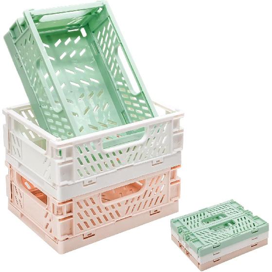 3 Pack Mini Plastic Storage Basket for Shelf Organizing,Collapsible Crate Folding Storage Bin for Desk Organizer Stackable Containers for Home — tüm dünyaya ücretsiz teslimat ile online ürün satın alın!