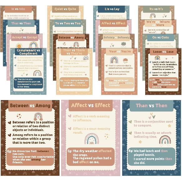 Enhance English Proficiency: you will receive 16 pieces of commonly confused words posters, these posters serve the function of an English teacher in the form of a classroom decor