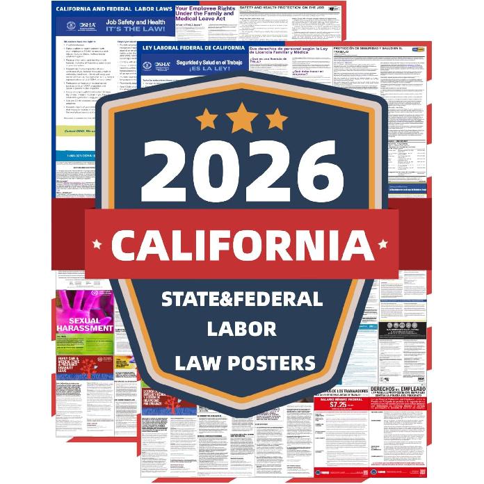 KERMENG 2026 California State and Federal Labor Laws Poster - English & Spanish Combo - OSHA Workplace Compliant - UV Waterproof Laminated 24" x 36"