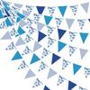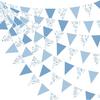 32Ft Blue Party Decorations Retro Blue Triangle Banner Flag Pennant Bunting Fabric Garland Streamers for Nautical Wedding Birthday Ahoy Achor Bridal