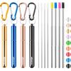 Cruise Ship Essentials,4-Pack reble Collapsible Stainless Steel Drinking Straws with Aluminum Case,Cleaning Brush,and Keycha-Silver,Blue,Red,Green