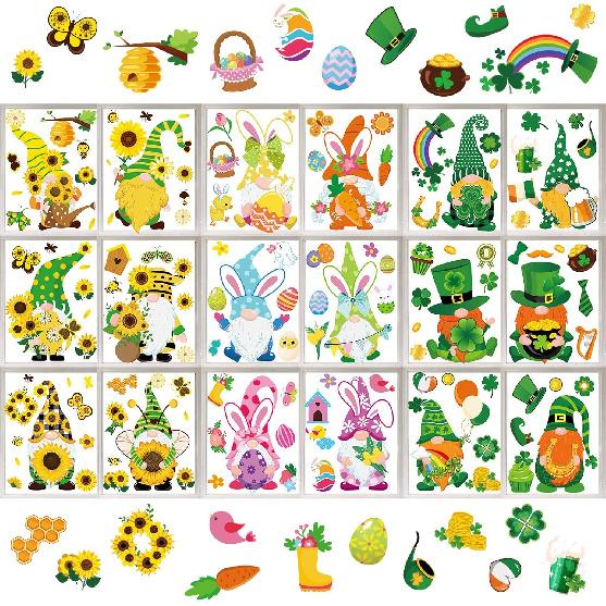 Whaline 18 Sheet Spring St. Patrick's Day Easter Window Clings Stickers Cute Gnome Window Decals Sunflower Bee Shamrock Easter Bunny Eggs Windows — tüm dünyaya ücretsiz teslimat ile online ürün satın alın!