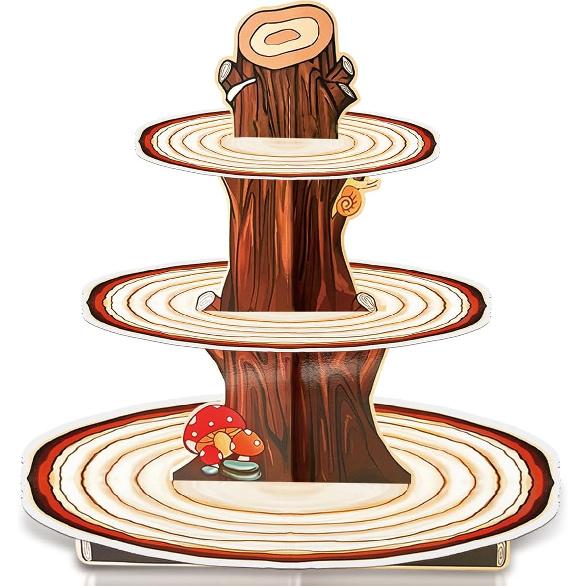 Wooden 3 Tier Cupcake Stand, Wood Style Cake Stand for Party Decorations Baby Shower Decoration, Enchanted Forest Safari Birthday Cupcake Decorations